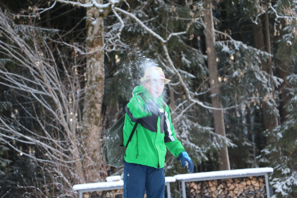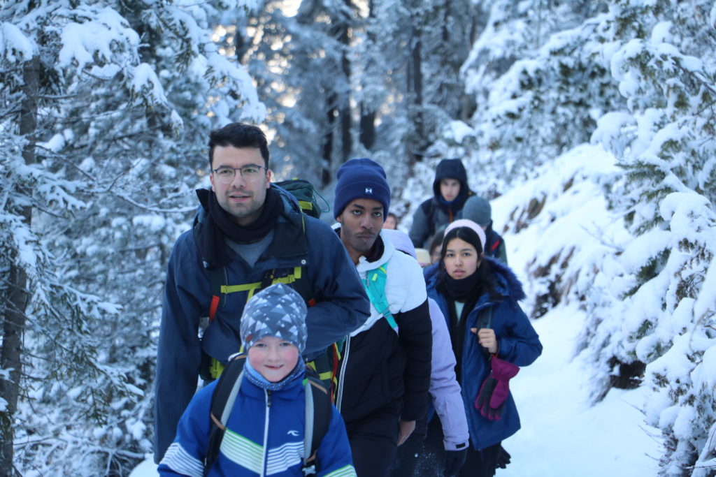 La descente s’est trouvée être d’une rapidité déconcertante, c’est à peine si nous avons réalisé que nous étions partis. Le trajet du retour s’est fait avec de moins en moins de luminosité, coucher de soleil oblige. Au chalet, nous avons eu la joie d’y trouver un goûter préparé spécialement à notre attention ; tresse, chocolat et tisane nous ont requinqués.