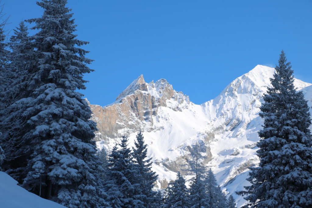 Le soleil a brillé alors que nous engloutissions les dénivelés. Nous avons eu l’immense chance de pouvoir admirer, entre deux sapins, les montagnes à perte de vue, drapées parfois de nuages, le soleil jouant de lumière et d’ombre sur les pierres.
